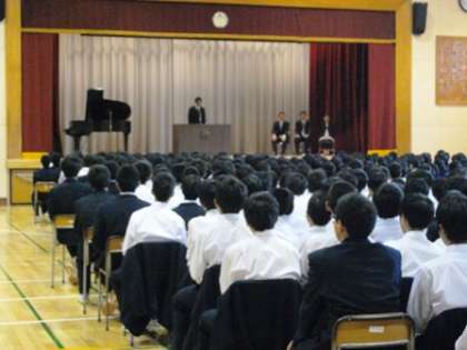 生徒たちは元気な校歌で先生方とお別れをしていました。