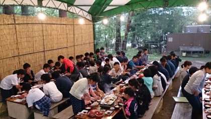 最後の夕食は、野外バーベキューです。すごい勢いで肉がなくなっていきます。明日もいい練習ができそうです。