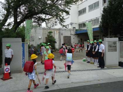 千歳小学校で、小学生と一緒になってあいさつに取り組みました。さわやかにあいさつが返ってくるとうれしいですね。