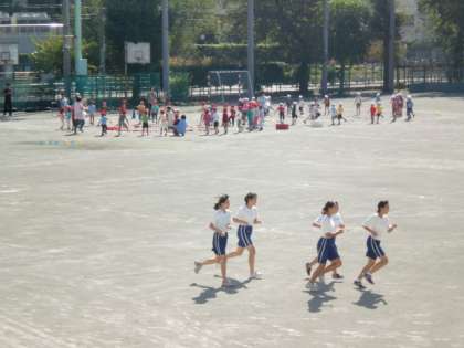千歳中の校庭を使って、千歳保育園の園児のみなさんが運動会練習に取り組んでいました。普段の中学校では見られないほほえましい光景に心が和みます。