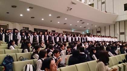 3年生の合唱が始まりました。課題曲は名づけられた葉です。全員合唱に会場は圧倒されています。