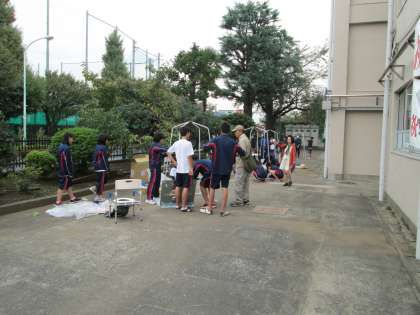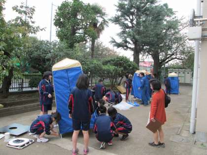 芦花高校の生徒の皆さんが、マンホールトイレの設置訓練を行いました。災害時の避難所で使用する仮設トイレです。本校敷地北側にマンホールが設置されていますので、防災倉庫にあるマンホールトイレを実際に組み立てました。とても手際よく、トイレが完成しています。頼もしい高校生の姿を見ることができました。