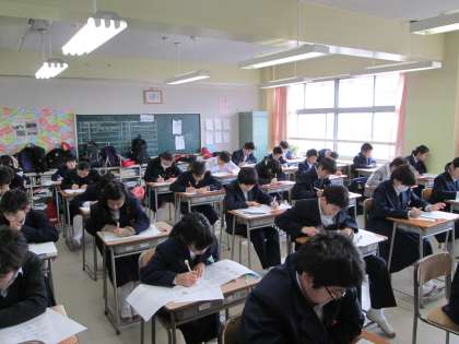 本日は、理科・保健体育・技術家庭のテストです。1年生も定期考査のやり方がきちんと身につき、落ち着いてテストに臨んでいます。あと1日、しっかりやりましょう。