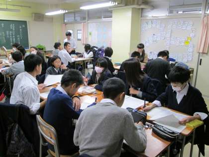 各自がまとめた新聞を班内で報告し合い、相互評価をしています。この新聞作りが、今後の校外学習や修学旅行に活かされていくことでしょう。経験を積んでいくことが大切です。