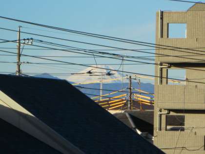 本日のような冬の澄んだ青空の下では、都内でも様々な場所で富士山を眺めることができます。千歳中の敷地内でも、今朝はこのようにはっきりと富士山をとらえることができました。さて、この写真はどこから撮影したものでしょうか?