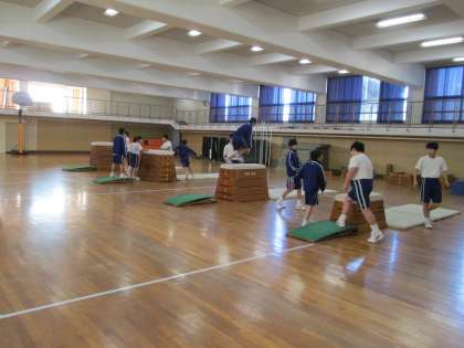都立久我山青光学園との2回目の副籍交流授業です。1年生の体育で跳び箱による器械運動を本校生徒と一緒に行いました。お互いに声を掛け合いながら、なごやかな雰囲気の中進んでいます。