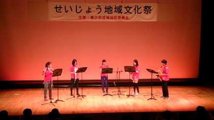 15回目を迎える「せいじょう地域文化祭」が成城ホールで行われました。千歳中から10名の生徒がボランティアとして参加し、模擬店やキッズコーナーの運営スタッフ、ステージ発表の司会者として大活躍でした。ステージでは、吹奏楽部有志が「Chitose Quintet」として出演し、すてきな演奏を披露しました。しっかりと地域に貢献した1日となりました。