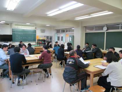 1年生で「哲学」の研究授業を行いました。宮沢賢治の「雨ニモ負ケズ」を通して、自分の理想とする生き方について考える授業でした。それぞれのクラスごとに工夫された興味深い内容となっていました。授業終了後に研究協議会を行い、充実した研修会となりました。