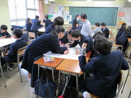 ワークショップは2回目に入っています。今回は、加害者の背景を考えるためのグループワークを行いました。加害者の形を絵に表し、その背景を想像して説明します。グループごとに発表して2回目は終了します。