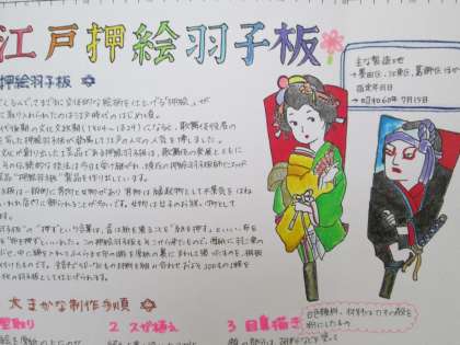 来週に迫った校外学習に向けて、社会科で調べ学習の課題がありました。江戸・東京の伝統工芸を調べています。すべて丁寧に手書きされた作品はとても見応えがあります。2年生の成長を感じます。