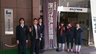 好天に恵まれ、予定通り千歳烏山を出発して班行動が始まりました。深川江戸資料館では予定の時間通りに到着した班が熱心にメモをとり、ガイドの方に質問しながら見学しています。良い1日になりそうです。