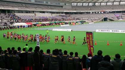 東京駅伝に千歳中から世田谷区代表として選手が出場しています。第1区で走った本校2年女子は先頭を競りあっています。