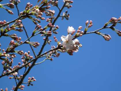 すっかり春らしくなりました。北校舎前の桜が咲き始めています。本日は、明日の修了式を前にしてこれから学年集会と大掃除に取り組みます。