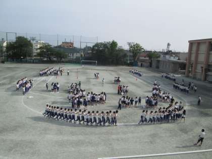1年生が校外学習に出かけている間に、2・3年生は放課後練習に懸命です。むかでが校庭いっぱいに広がり壮観です。