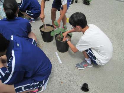 今年も3年生はナスの栽培に取り組みます。ていねいに植え付け作業を行いました。水と肥料の管理をしっかりやって、おいしいナスをたくさん収穫しましょう。