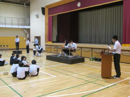 生徒総会を翌日に控え、放課後にリハーサルが行われました。議長の進行に従い、提案者と発言者の発言のタイミングを確認しました。クラス討議に基づいた建設的な意見のやりとりがみられることでしょう。話し合いの仕方をこの機会にしっかり身につけたいですね。
