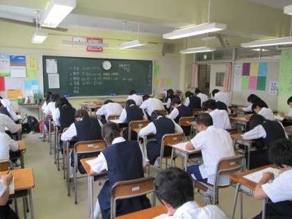 最終日は、数学・理科・音楽です。試験直前まで部活動の大会があった人も多い3年生ですが、さすがの集中力を発揮しています。給食を食べた後に放課後の活動が再開されますが、あいにくの天候となって校庭が使えません。合唱コンクールの選曲委員会が学年ごとに行われています。
