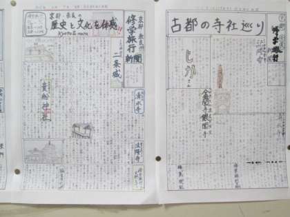 修学旅行のまとめを新聞の形にして表現しました。3年間の集大成としてこれまでの学習成果がみごとに発揮されています。保護者の皆さま、保護者会の折にじっくりとご鑑賞ください。