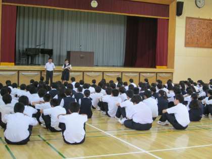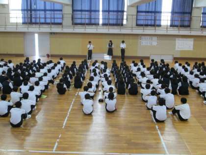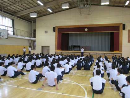蒸し暑い終業式となりました。全校の終業式を前に、学年ごとに集会がおこなわれました。各学年ともに、学級委員会が中心となって運営されています。自治の力が育ってきていますね。生徒の皆さん、有意義な夏休みにしてください。保護者の皆さま、1学期の間のご支援ありがとうございました。