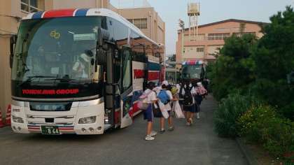 18時25分、無事に学校到着です。荷物を整理して、これから部活動ごとに解散します。
