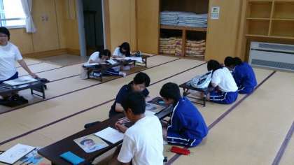 午後の活動が始まりました。美術部は写真を使って鉛筆画のレッスンです。バレー部とラグビー部は体育館で練習です。元気に活動しています。