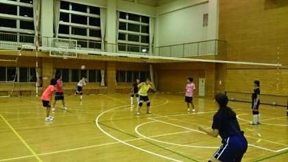 学園内に体育館があるので、夜もしっかり練習できます。バレー部の練習にラグビー部女子が参加して合同練習会となりました。いきなり試合形式でも、何とか形になってます。