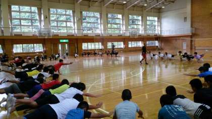 2日目が始まりました。朝礼では、体幹トレーニングを行い体を目覚ましました。