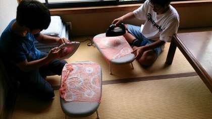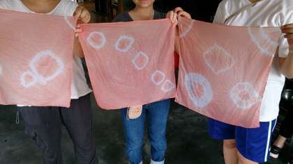 美術部は大石紬伝統工芸館で草木染めの体験学習を行いました。個性あふれるハンカチの完成です。