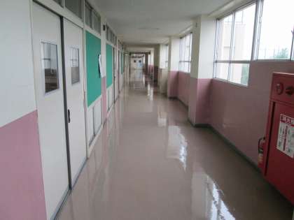 長かった夏休みもあっという間に終わりました。夏休み中、生徒の皆さんは様々な活動に取り組んだと思いますが、校内では主事さん方が廊下を磨き上げて新学期を迎える準備を着々と進めていただきました。輝く廊下が生徒の登校を待っています。