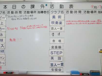 本日より部活動も中止となります。今週末のシルバーウィークの過ごし方が鍵になりそうですね。部活動ボードもしばらく休憩します。