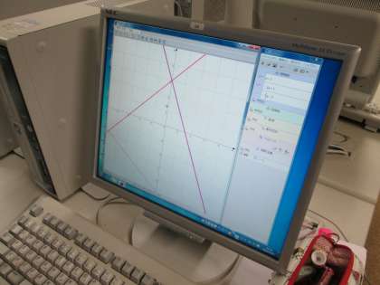 パソコンを活用して、一次関数を学んでいます。グラフ作成ソフトにより様々な関数のグラフを作成して、一次関数グラフの特徴を考察しました。ICTを活用した授業の工夫が着々と進んでいます。