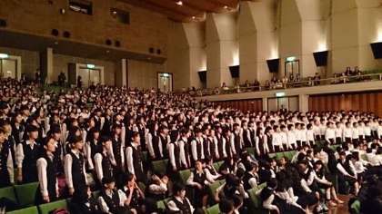 3年生の合唱が始まりました。圧巻の歌声です。E組自由曲は「信じる」です。