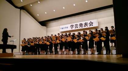 PTA合唱は「ひまわりの約束」です。毎週土曜日に練習を重ねてきました。大人の歌声です。