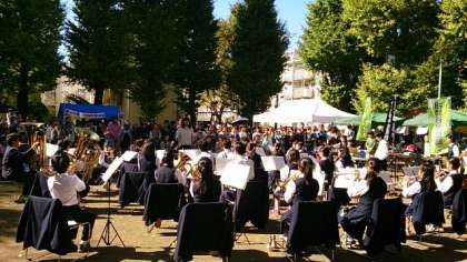 爽やかな秋晴れの下で、吹奏楽部の演奏が行われました。このフェスティバルには第1回から連続して出演していますので、吹奏楽部の演奏がなくてはこのフェスティバルが始まりません。今年も地域の皆様に喜んでいただける演奏となりました。