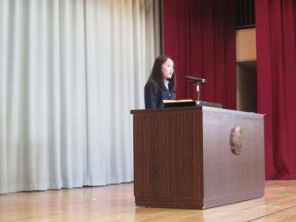 校長先生のお話の後、英語スピーチコンテスト出場者のスピーチと表彰が行われました。