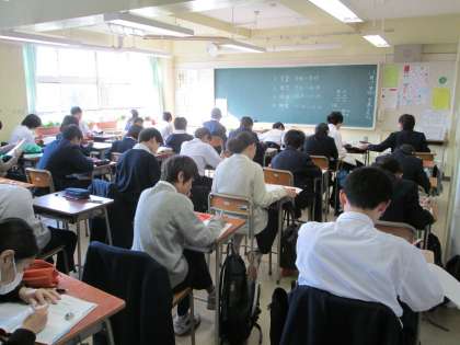 始めに学習の時間があります。黙々と最終確認に励んでいます。3日間がんばれ!