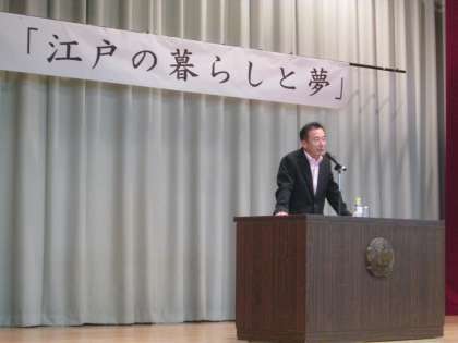 作家の稲葉稔氏をお迎えして、「江戸の暮らしの夢」という演題で講演会を開催しました。江戸時代後半を主要舞台とする時代小説の著作が多数ある稲葉氏から、江戸の町人の暮らしぶりや当時の人々の考え方などを、具体的なエピソードを交えてわかりやすくお話いただきました。「目標を立てて進んでいるうちに何かが見えてくる」と中学生へのメッセージもいただきました。校長室前に稲葉氏の本が並べられています。興味のわいた人はぜひ手にとってみてください。