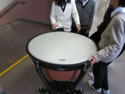 吹奏楽部に新品のティンパニーが届きました。高価な楽器ですが、なんとか予算をやりくりして購入することができました。パーカッションパートの生徒は大喜びです。大切に使いましょう。