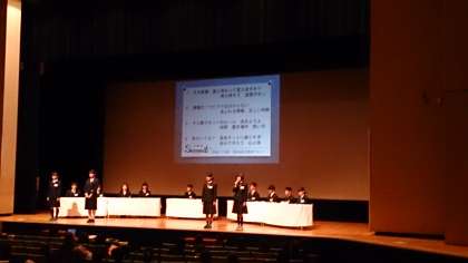第10回14歳の成人式が世田谷区民会館で行われました。今年のテーマは「14歳 大人への第一歩」です。1ブロックの発表の中では、千歳中の学び舎農園が紹介されました。「14歳 ネット社会をよりよく生きる」というシンポジウムではネット社会の功罪について、活発な意見交換が行われました。1年生への確かなメッセージをしっかり受けとめて、学校生活にいかしたいですね。