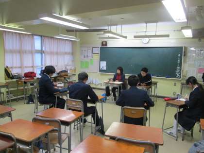 都立高校の推薦入試では、面接に加えて集団討論が行われます。先週の金曜日からそのための練習に取り組みました。集団で行うことに戸惑いながらも、懸命に自分の考えをまとめて討論に臨んでいました。本番に向けて、準備が順調に進んでいます。