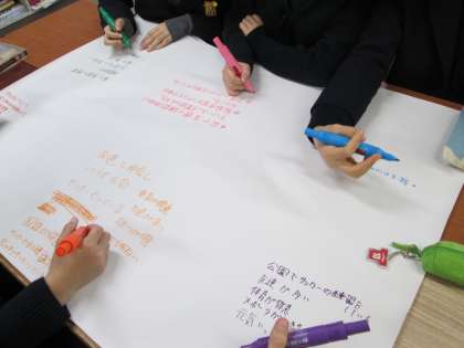 3回目は、自分の良いところを書き出すグループワークに取り組みました。たくさんの発見があったようです。