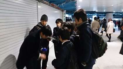 東京駅に最初の班が到着しました。班行動の始まりです。東京のよいところをたくさん発見してください。