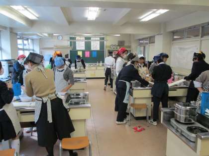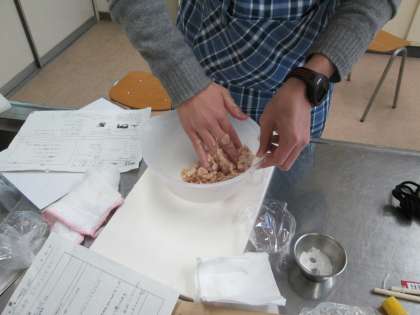 調理実習で肉まん作りに挑戦です。小麦粉を練った皮作りから始まり、すべて手作りのオリジナル肉まんができました。お味はいかがでしたか?地域の方に実習補助としてお手伝いいただき、充実した実習ができました。ありがとうございます。