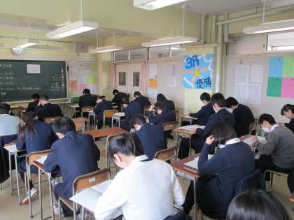 3年生は義務教育最後の定期考査となりました。最後まで集中して答案に向き合っています。明日からはいよいよ3月。中学校生活の締めくくりとして有終の美を飾ってください。