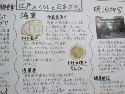 先月実施された都内巡り校外学習のまとめが廊下に掲示されています。もうすぐ最上級生となる2年生ですが、どの作品にも成長の跡が見られ、3年生への準備が着々と進んでいることがわかります。