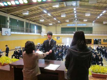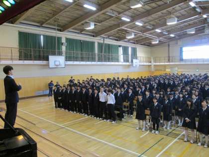 卒業式予行を明日に控えて、練習も佳境に入ってきました。3年生の学年練習では、最後の通し練習です。一人一人の証書授与の動きがとても良くなりましたね。立派な態度です。5時間目は初めての全校練習です。歌を中心に行いましたが、明日の予行に向けて心構えをしっかりつくることができたようです。