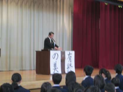 1年間の納めの日です。代表生徒に修了証が手渡され、いよいよ上級学年への進級です。決意を新たに、4月を迎えてください。新たな千歳中の伝統を築き上げましょう。期待しています。