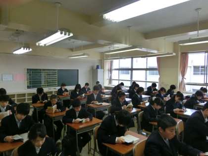 千歳中の一日は朝読書から始まります。8:30からの10分間ですが、静かに読書することで落ち着いて一日のスタートが切れます。毎日続けることで3年間の読書量は膨大になります。