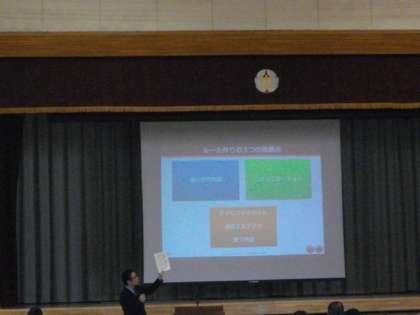 13日(水)、28年度最初の保護者会がありました。はじめに「SNS東京ルール」について、東京都ファミリeルール事務局統括マネージャー山本啓史様の講演が行われました。ネットトラブルに巻き込まれないためには親子で話し合い、家庭でのルールつくりの大切さを話していただきました。