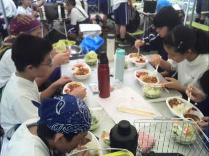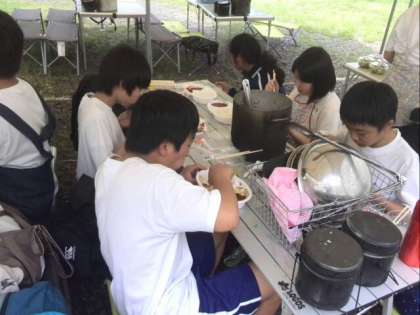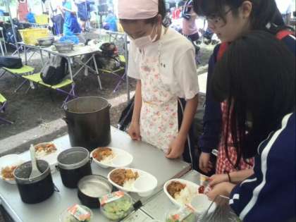 苦労して作ったカレーはどの班も美味しそうです。でも子どもの感想は、「家のがうまい」でした。